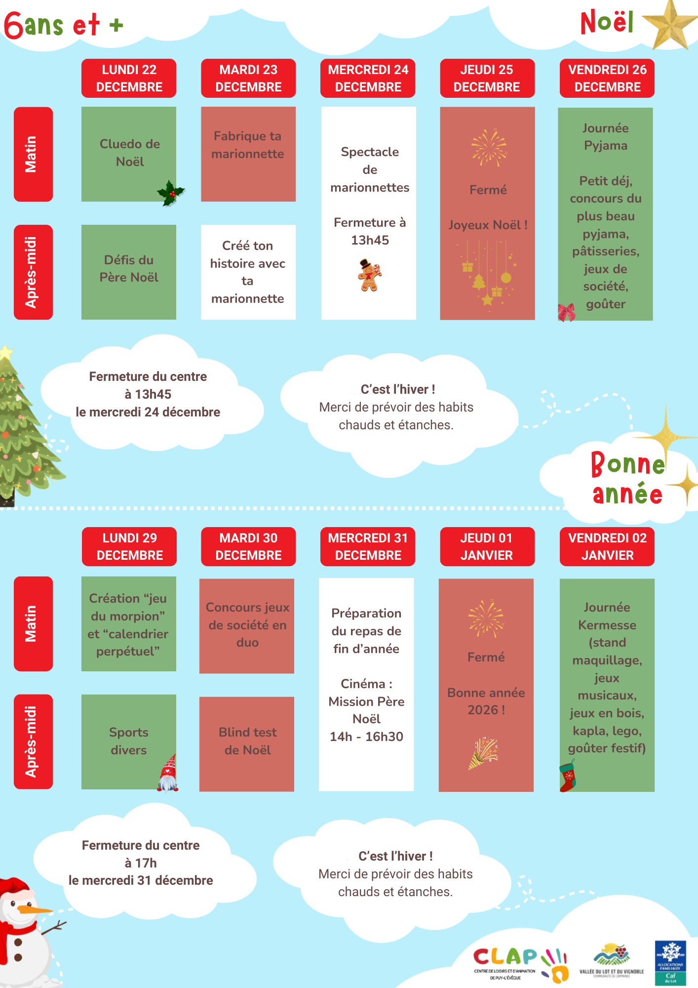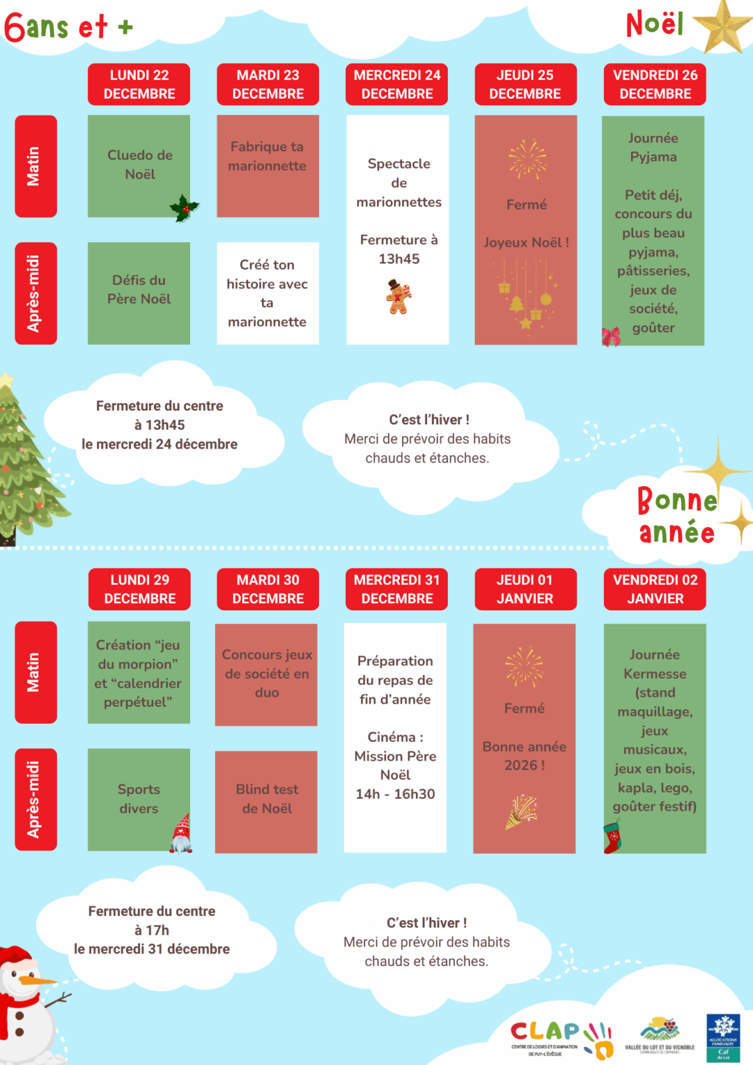 - Des suppléments sont à prévoir en fonction des sorties (patinoire, parc).