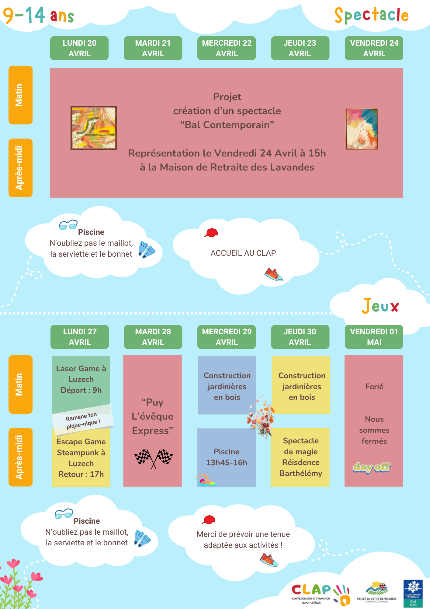 Les programmes pré-ados seront régulièrement mis à jour et postés ici.